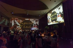 壁一面に投影されるプロジェクションマッピングは、一気にゲストを引き込みます。