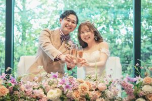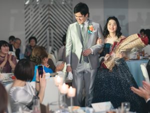 新郎様もご一緒に異なる雰囲気のタキシードでお色直しされると、