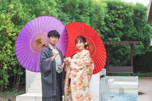 和装での撮影は番傘を使った撮影もオススメ!