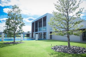 リーヴスの会場は、エントランスのプールや木が印象的♪