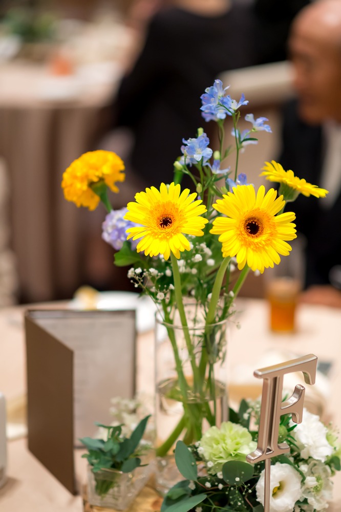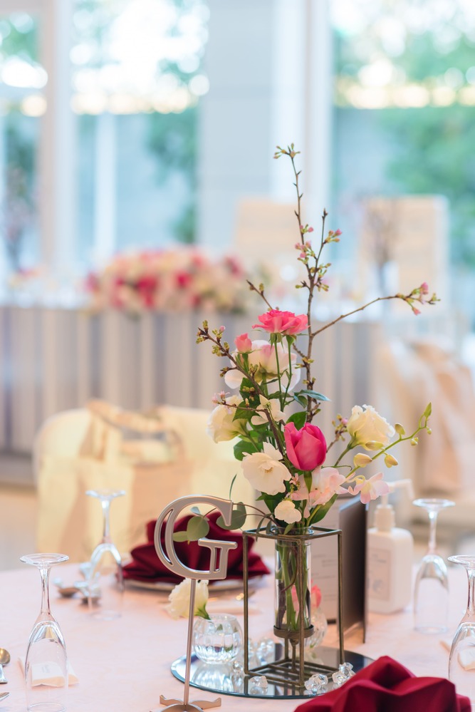 そして会場内のテーブルにあるフラワーベースに