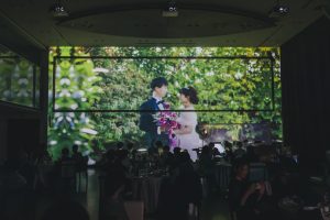 カーテンが開き、ガーデンには新郎様新婦様のお姿が…!