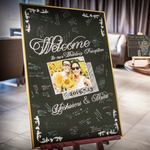 大きなウエルカムボードに、ゲストの皆様からのメッセージを書いていただき
