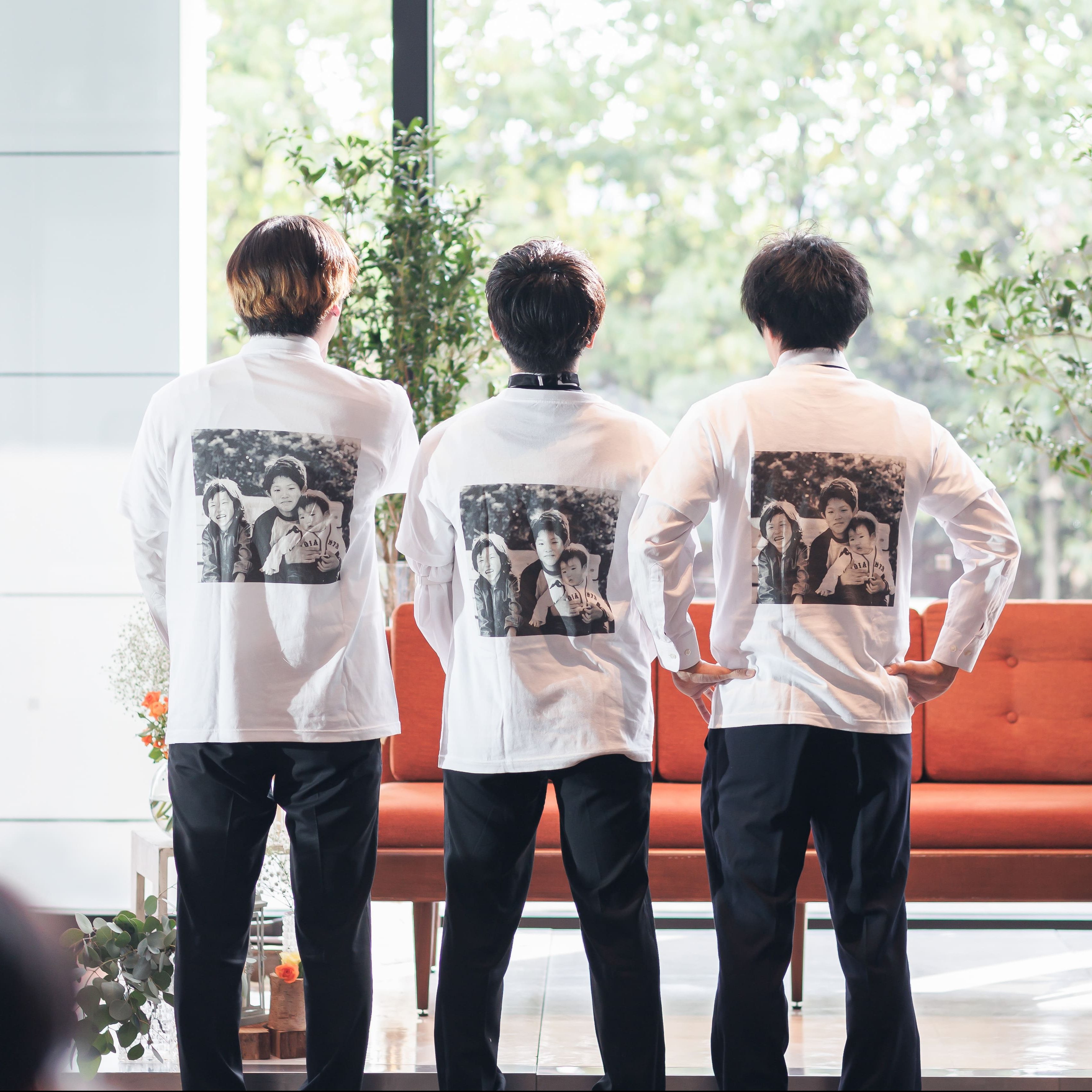 三人兄弟がプリントされたオリジナルTシャツを着て♪