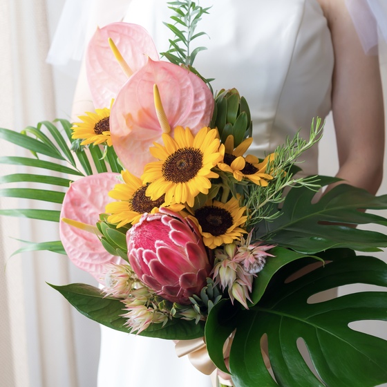 夏らしいフラワー「ひまわり」を用いたり