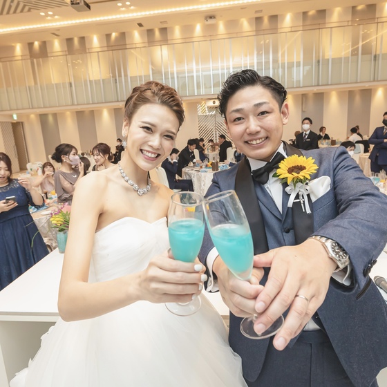 爽やかな色の乾杯酒で乾杯なども良いですね。