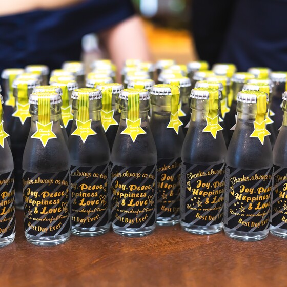 プチギフトは、夏らしく冷えたサイダーをお配りしたり♪