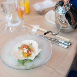 ゲストの皆様の元にお料理が届いたら、スタッフが魔法の液体を注がせていただきます。