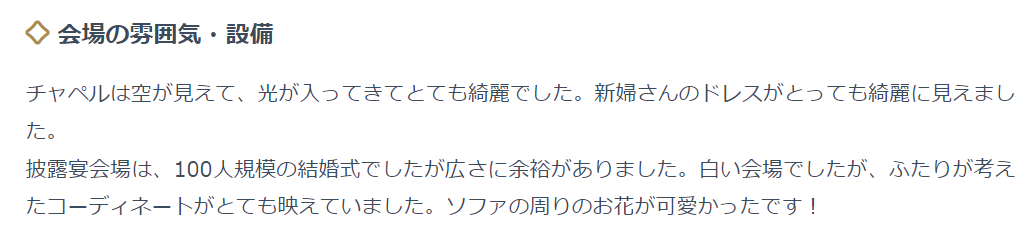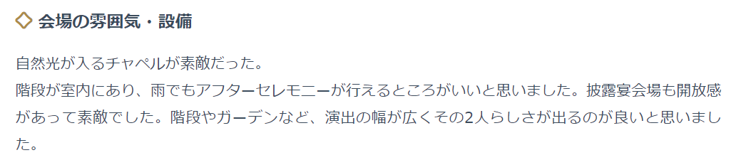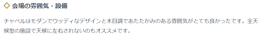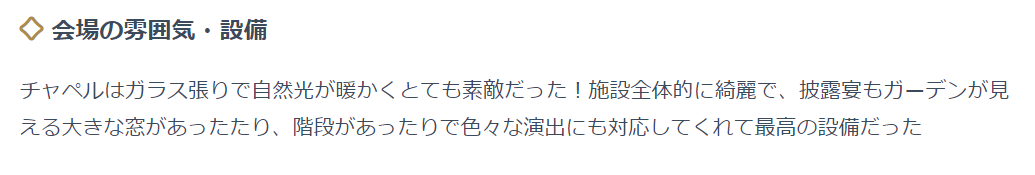 \会場の魅力はコレ!/クチコミに寄せられたリアルなお声とともにご紹介