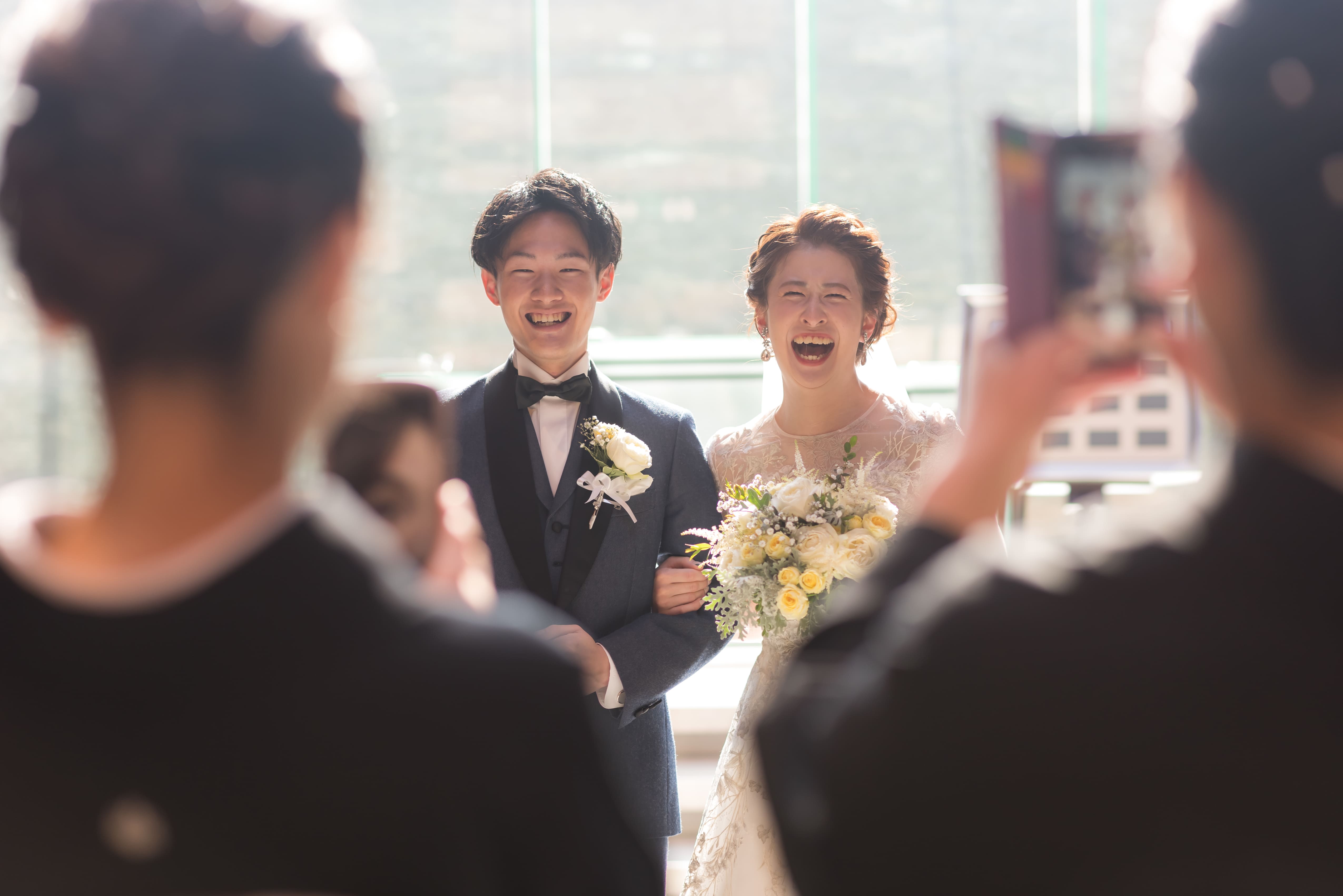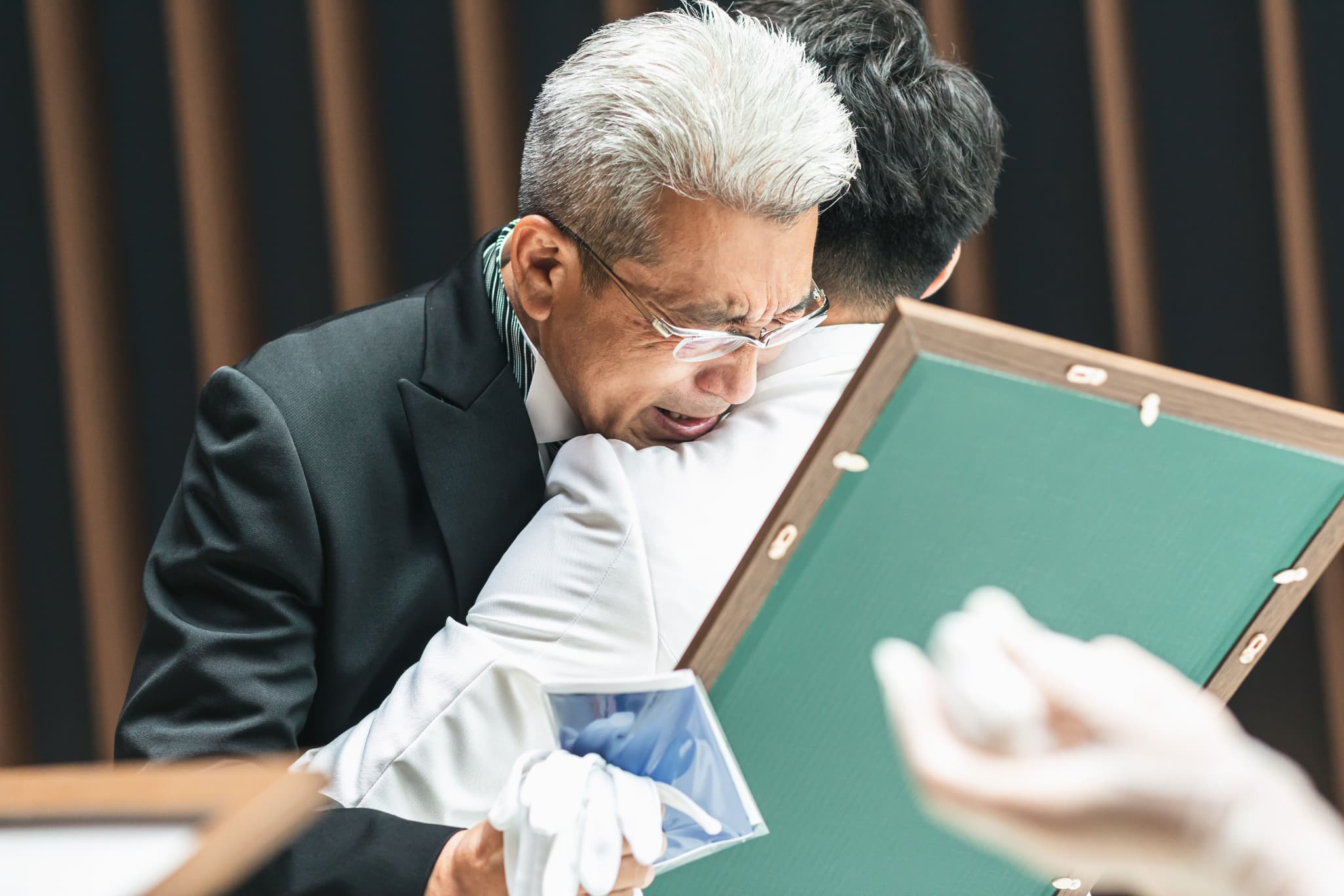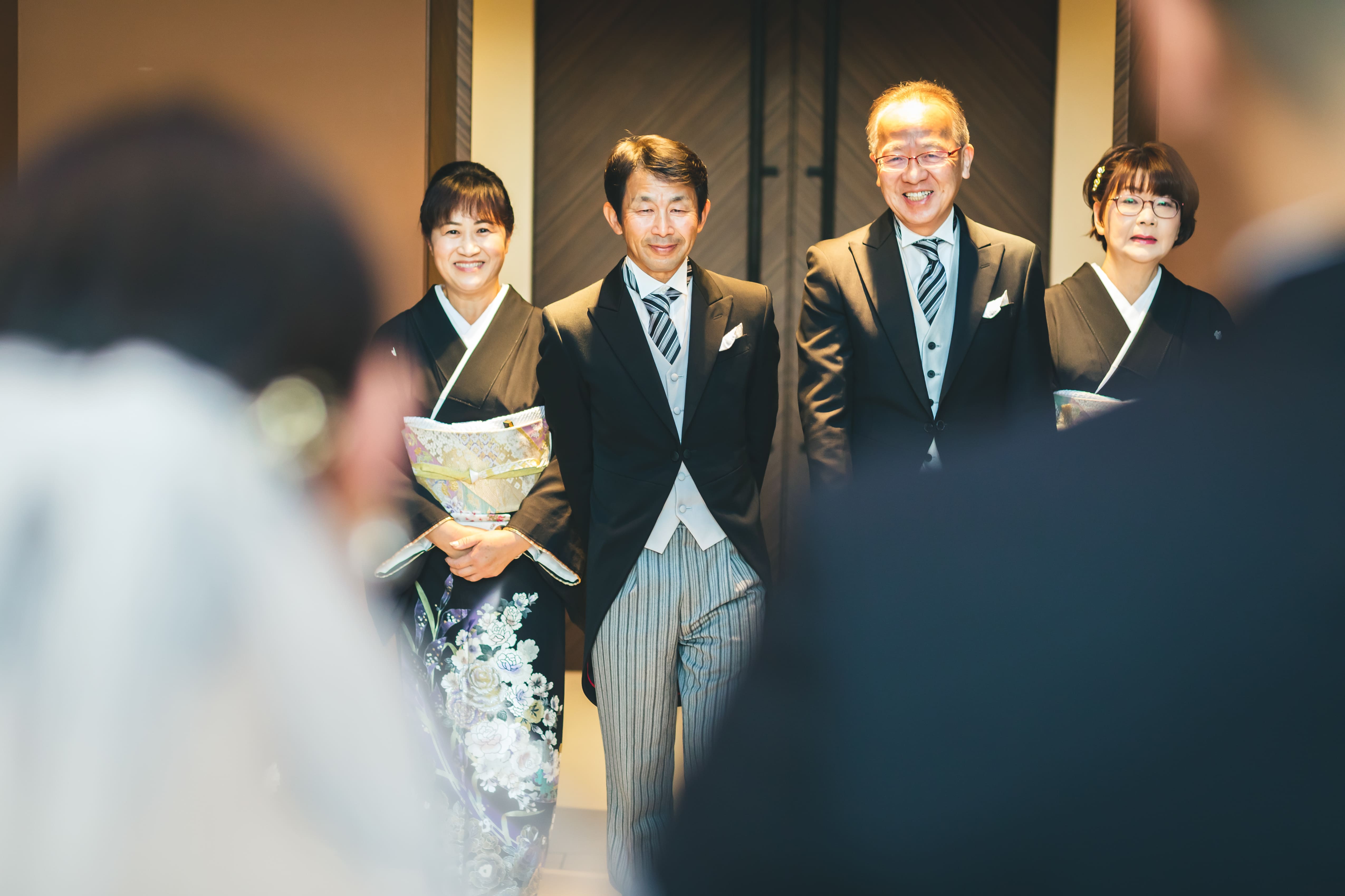 晴れ姿のおふたりと、大切な親御様での対面の瞬間。