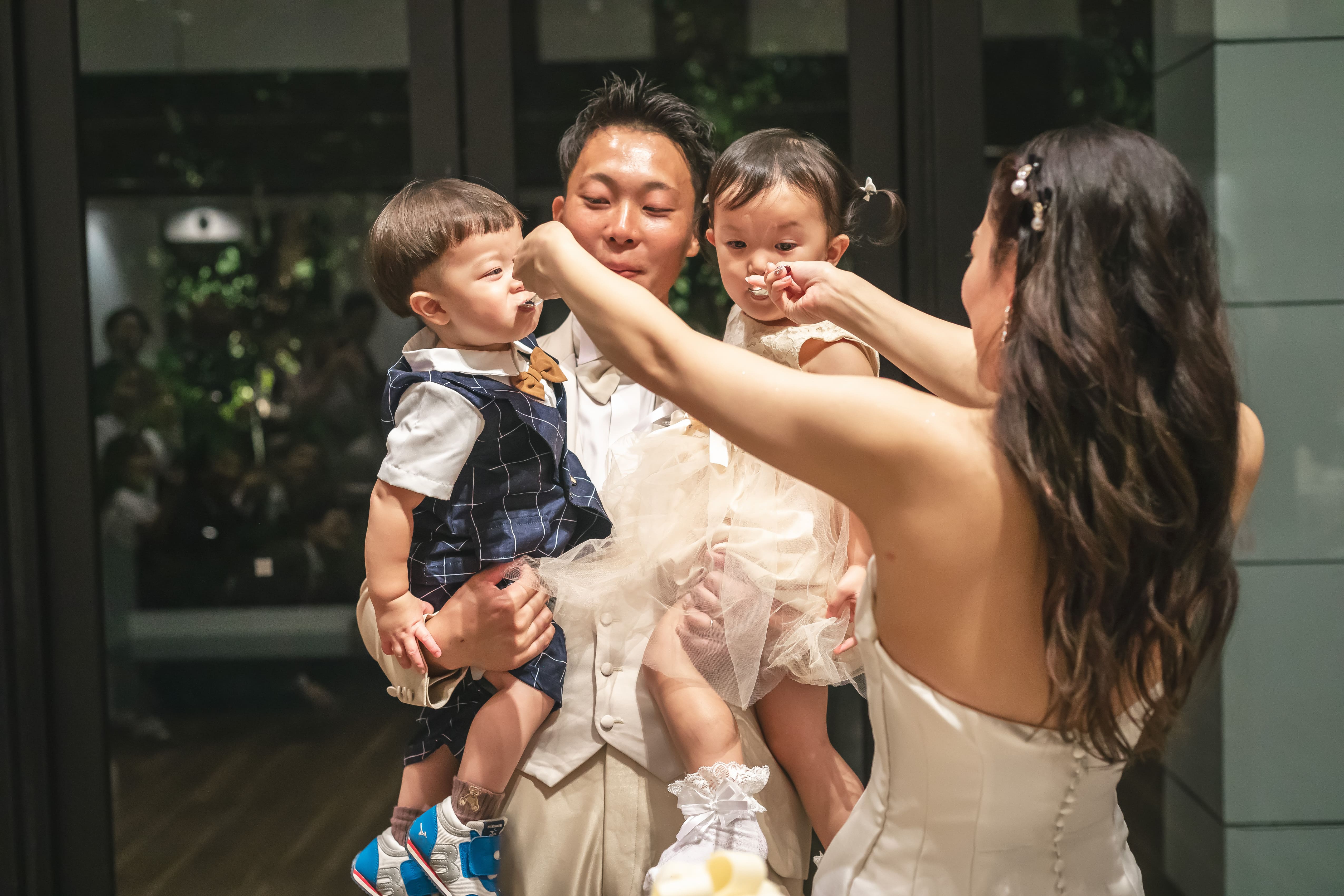 ケーキを食べさせる「ファーストバイト」