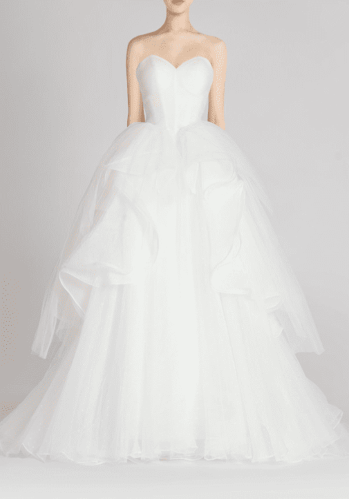 歩みに合わせて揺れ動く姿がロマンティックな1着。