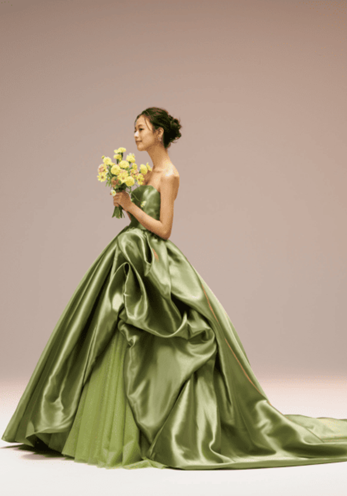 絶妙な上品なカラーと華やかさを兼ね備えた1着に。
