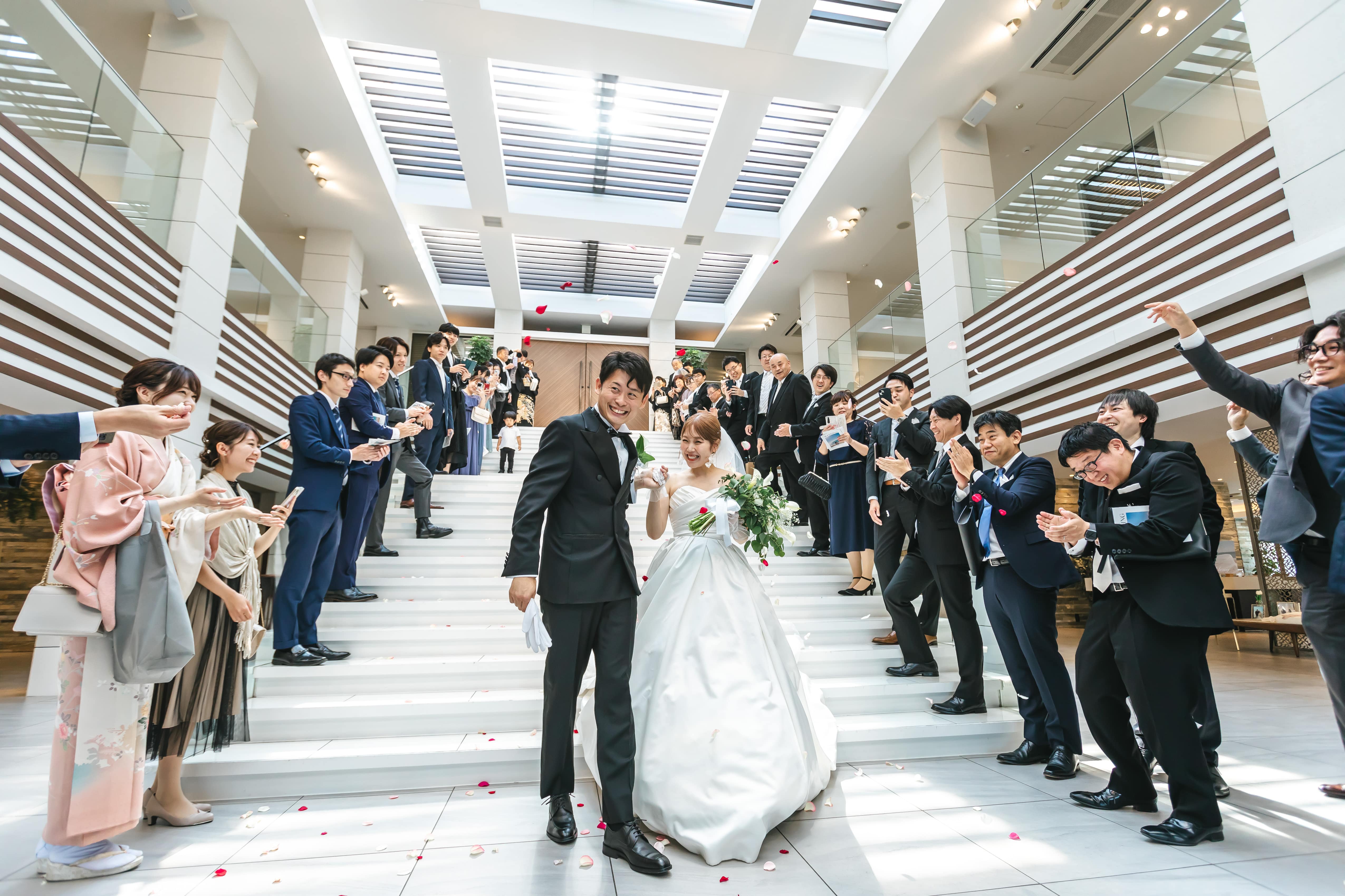 憧れの大階段でのフラワーシャワーやガーデンからの入場は