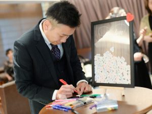 今までお世話になったゲストの方から一人づつメッセージをいただき、それを一つのボードにいれていく。