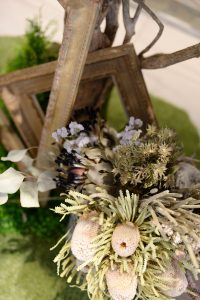 ドライフラワーやアンティークなフォトフレームを飾れば