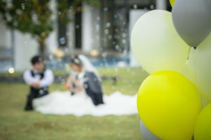 束ねたバルーンであれば一気に華やかな前撮りグッズになります★