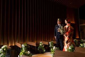 新郎様の職場の制服と色打掛を活かしたオリジナルの衣装に!