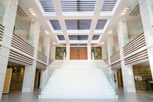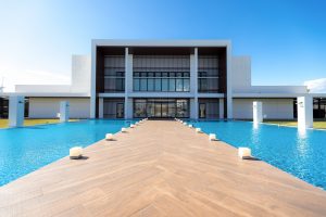 一本の道がエントランスからチャペルにかけて