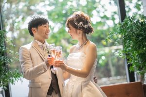 メイン席でのお写真も背景にガーデンが映りこみ