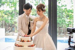 ケーキ入刀のシーンも、背景がガーデンだからこそより素敵なお写真が残せます♪