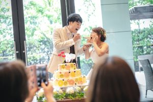 ケーキ入刀からのファーストバイト♡