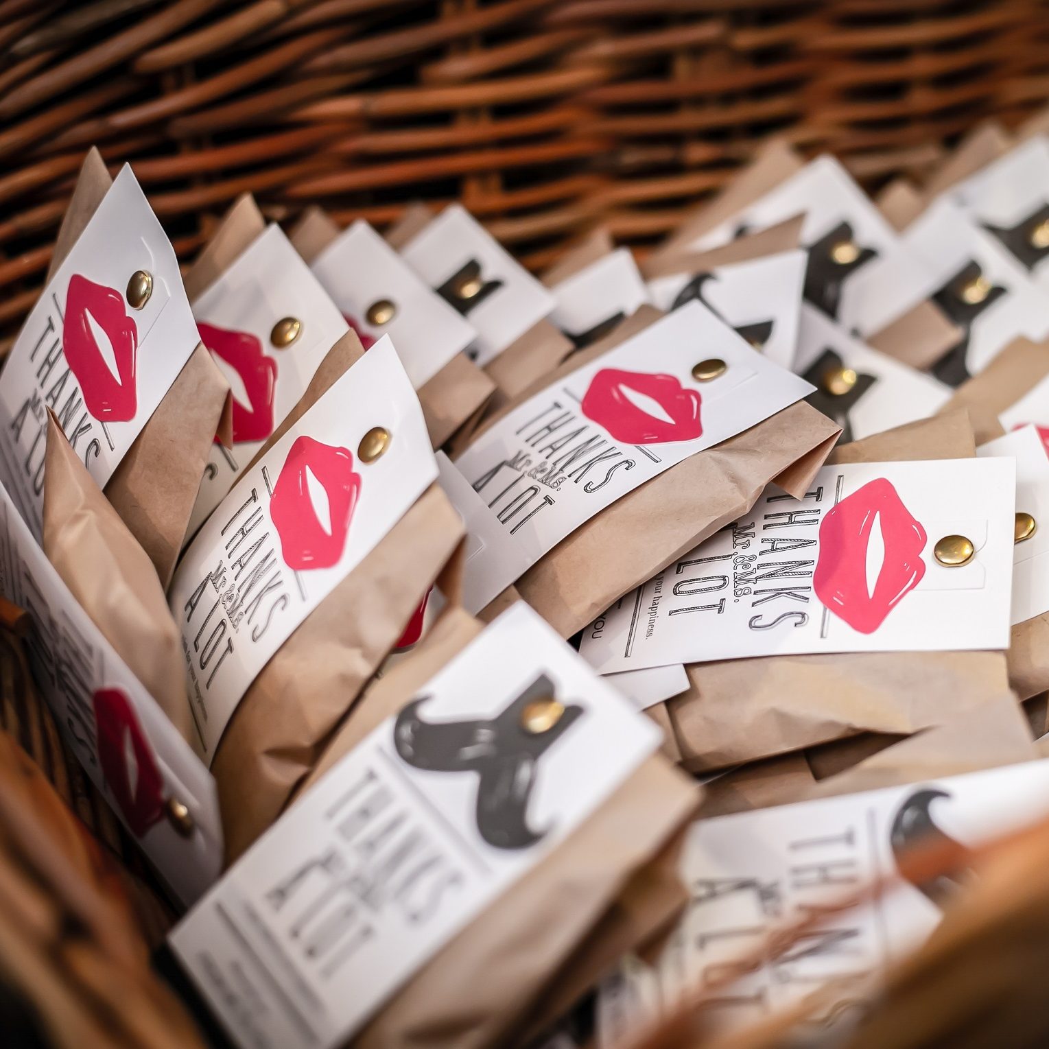 お見送りお配りするプチギフトのご紹介♪ ①ゲストの会話の一つに男性女性で違ったプチギフト! ②フラッグ...