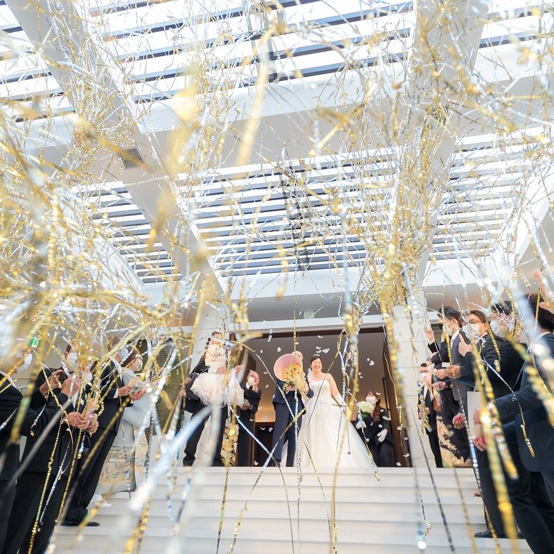 挙式のあと、アフターセレモニーという場面で 新郎新婦様はビッククラッカーを持ってご登場! インパクト...