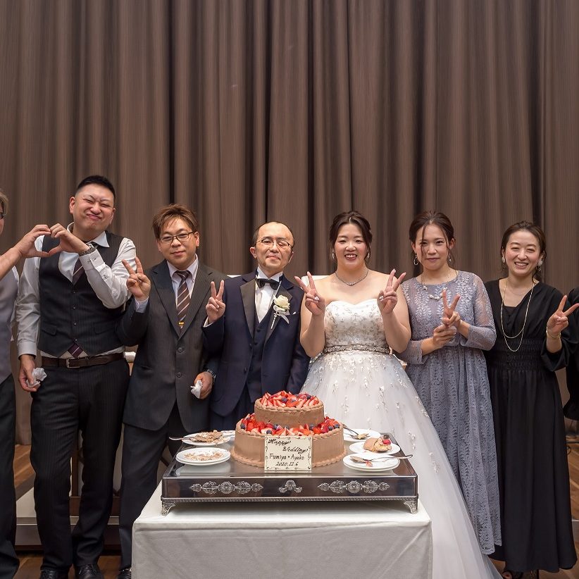 ウエディングケーキ入刀をして 新郎新婦様同士でファーストバイト♡ そのあと、ゲストを巻き込み おふたりの...