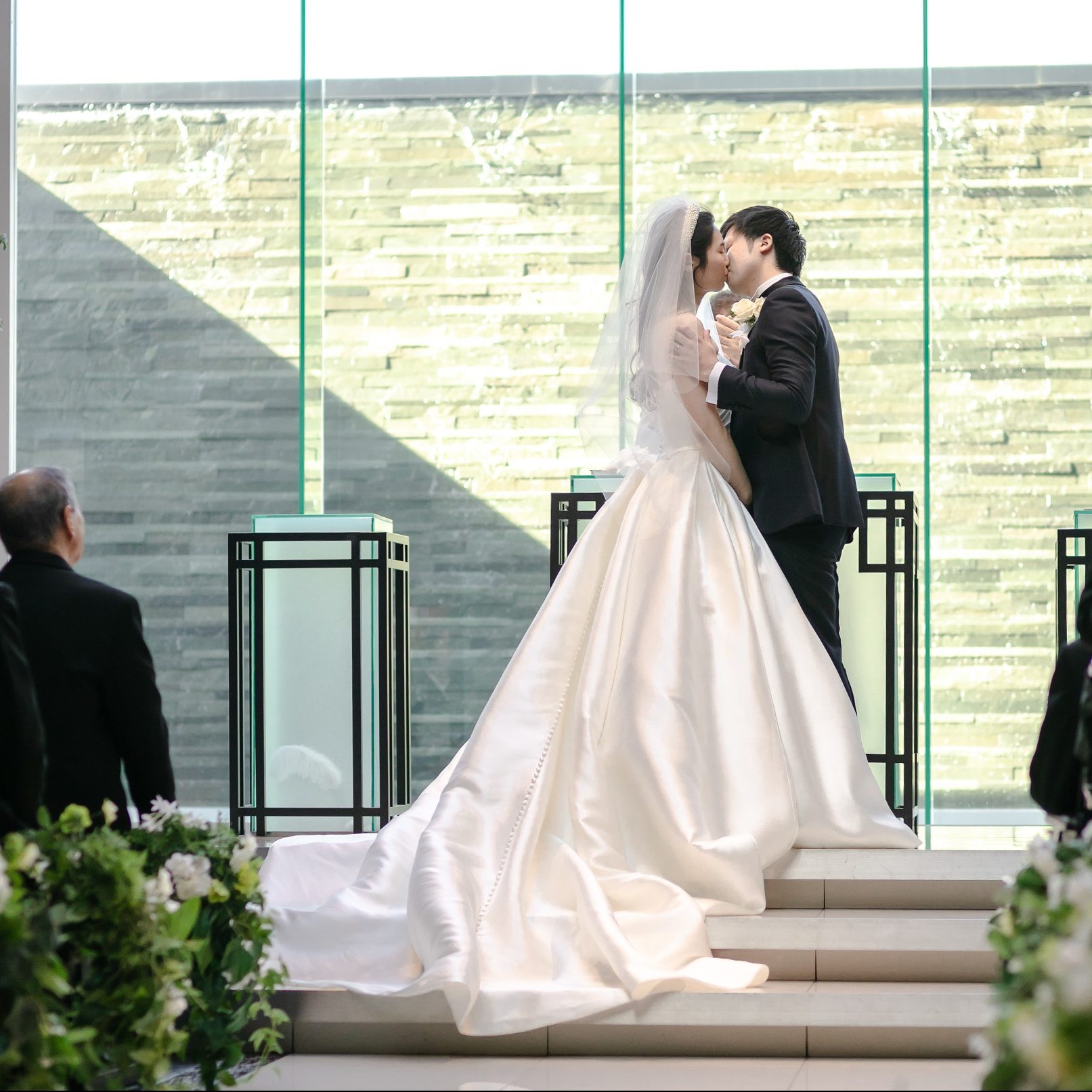 ウエディングキスは神様への誓約の言葉を 封じ込めるという意味がございます 誓いの言葉を言って 結婚指...
