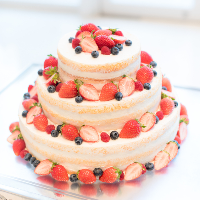 ベリーミックスで創られたウェディングケーキ♪ サイドはクリームがみえるつくりで、 柔らかい雰囲気がとても人...