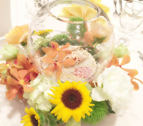 本日は、会場を彩るお花のコーディネートをご紹介します♪ 暑い日が続くこの季節、ひまわりを使ったコーディネ...