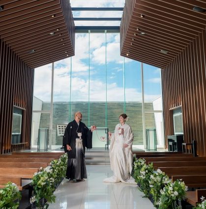 空が天井いっぱいに広がるチャペル お2人のご結婚式のその日にしか見ることのできない空のもとで 愛を誓いませ...