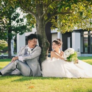 リーブスの会場をめいっぱい使った前撮り! 自然に囲まれた中で、リラックスしながら おふたりらしいナチュラル...