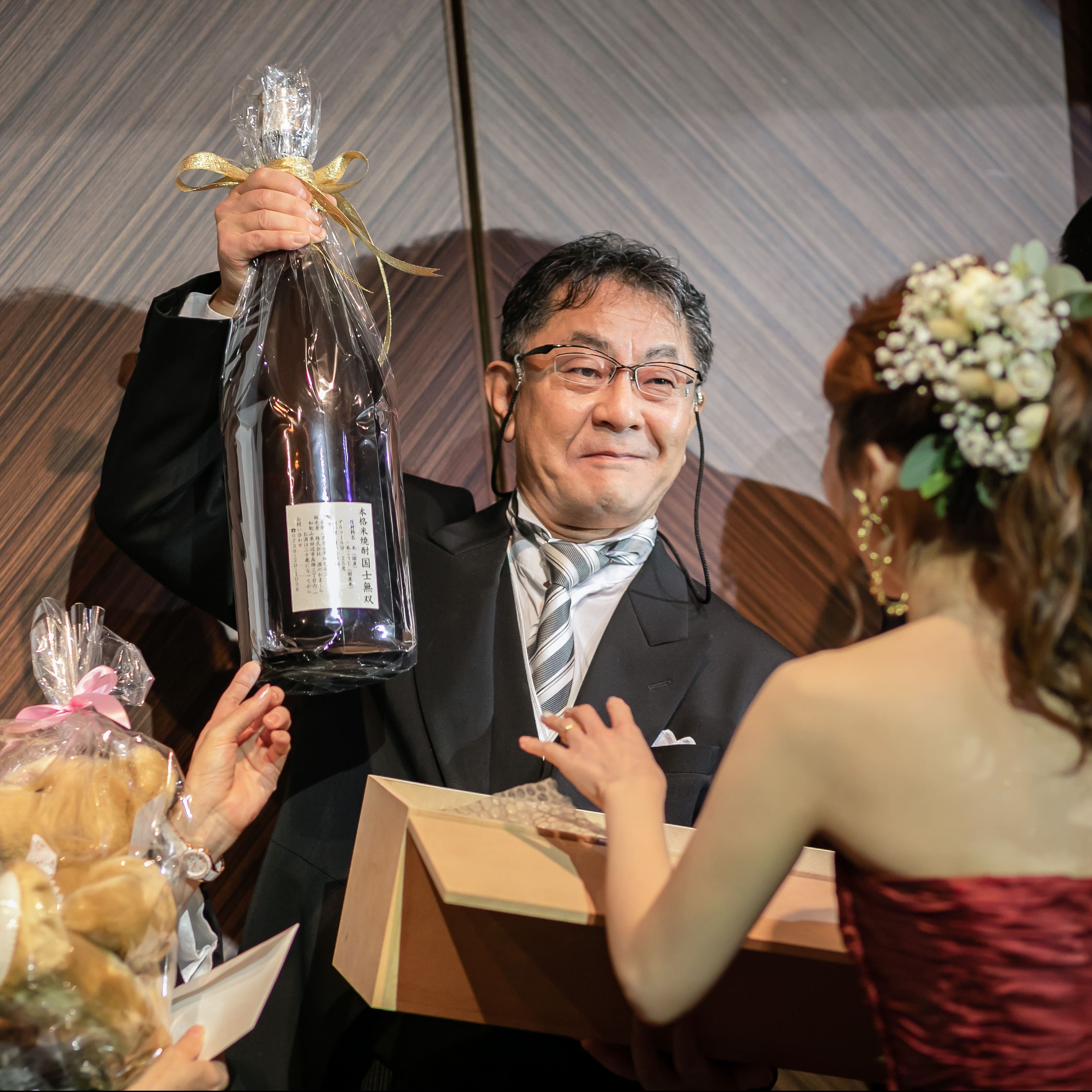 結びの際にお渡しする 親御様の記念品 手紙を添えた花束のみならず お二人の想いを込めた記念品をお渡しする...