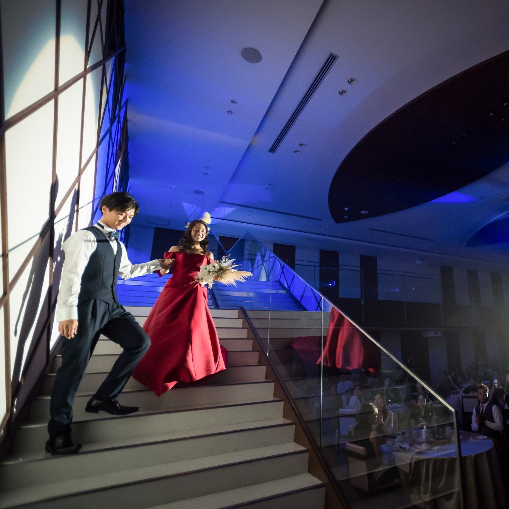 リーヴスでは、披露宴で2階からの入場ができます♪ 運命のドレスとタキシードを着て、 階...