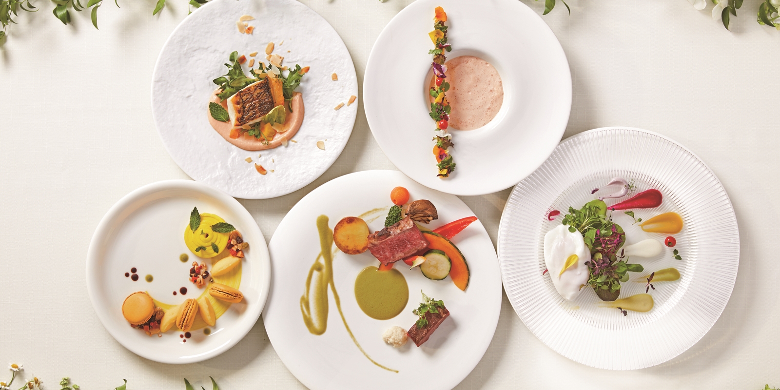 おもてなしの要となる料理。ザ・リーヴス プレミアムテラスでは、華やかなフレンチスタイルをベースに日本人らしい繊細なおもてなしの心を込めた“フレンチジャポネ”をご提供しています。