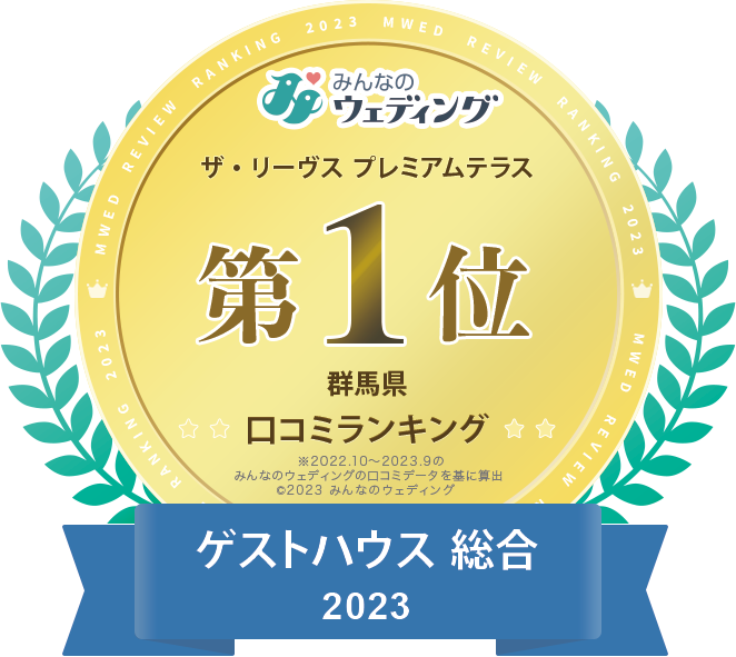みんなのウェディング 群馬県 ゲストハウス1位に選ばれました。