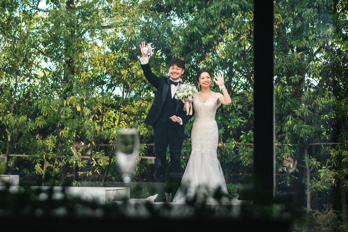柔らかな自然光が新郎様 新婦様を優しく照らしてくれます。