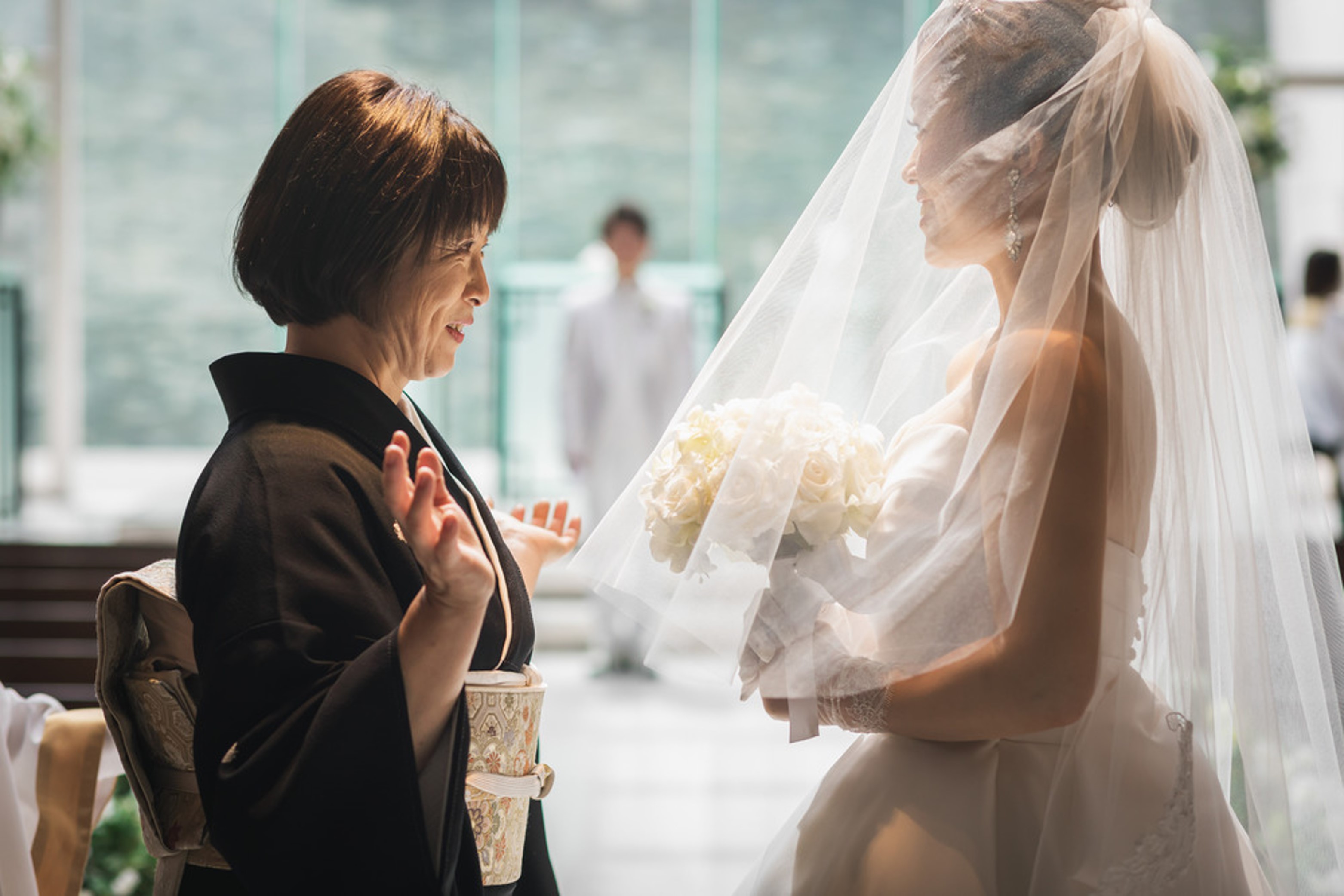 おふたりの晴れ姿に笑顔と涙の親御様。