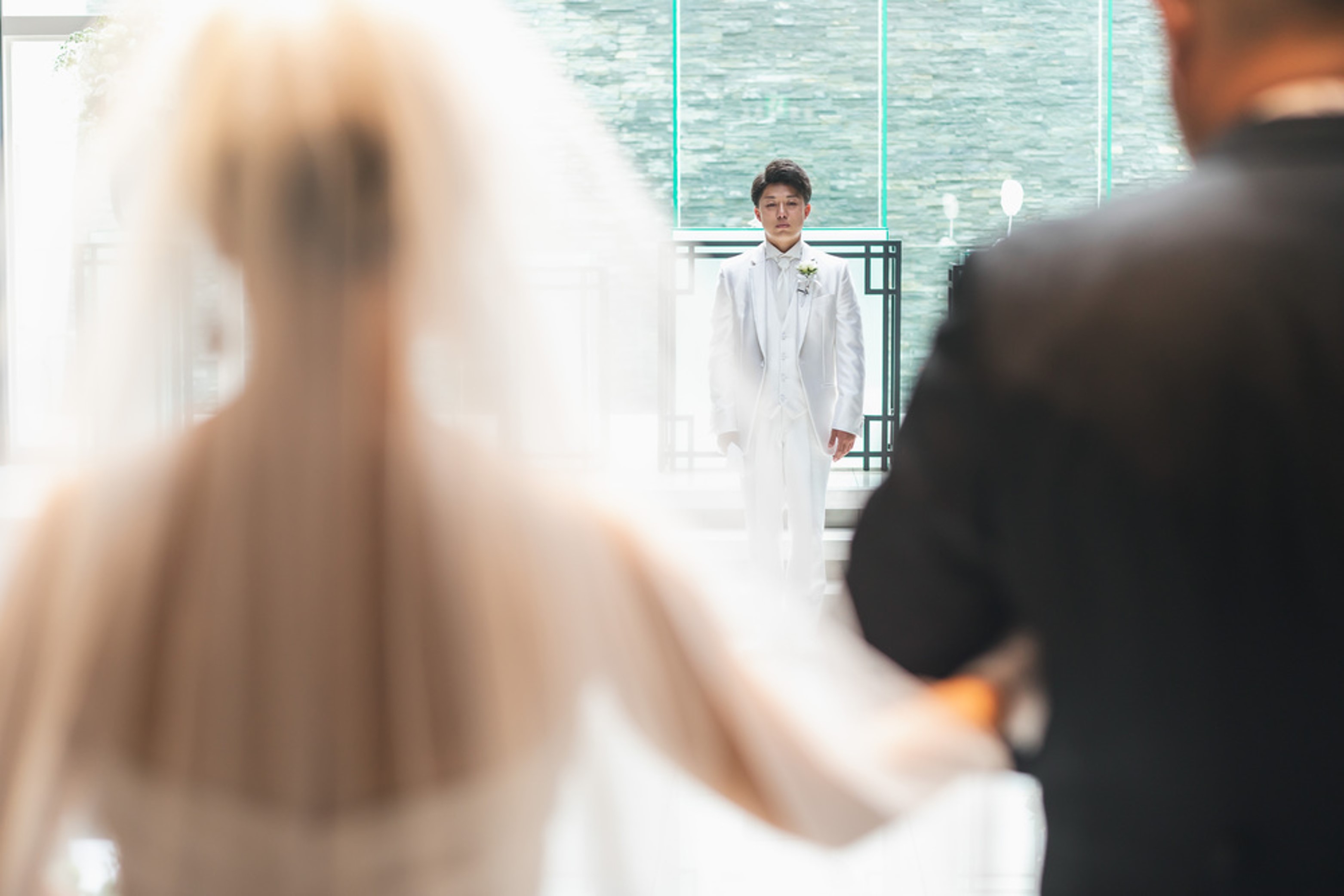お父様とバージンロードを歩く姿