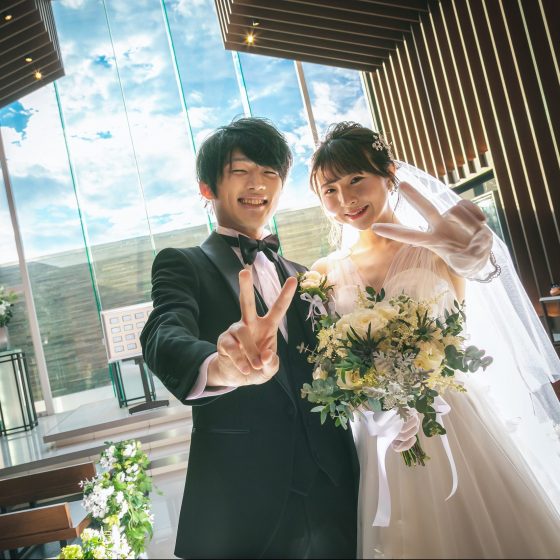 夕方からの式だったので、日が落ち切る前の美しい光が優しくチャペルに降り注ぎ、夕方ならではの幻想的な雰囲気で式を挙げることができました。