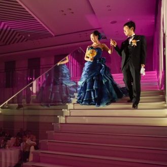 また、参列していただいたゲストの方におもてなしで喜んでもらいたいと思っていたので、見学の際にいただいた料理が彩り豊かで美味しく、特に肉料理の味が抜群なのもポイントでした。また、お色直し後は階段を使った演出で入場したいと考えていたため、パーティー会場に階段があることも決め手でした。