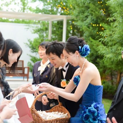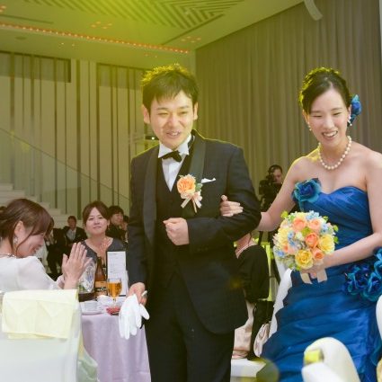 前日までの雨も上がり快晴とまではいきませんでしたが、ガーデンからの入場など外で行う演出も予定どおりできたので、よかったです。