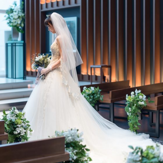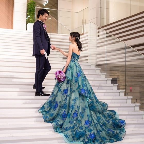 会場は全天候対応でチャペルは光が差し込み、明るく開放的な雰囲気でとても気に入りました。大階段も天井から光が降り注ぎ、清潔感がとてもある広々とした空間でした。