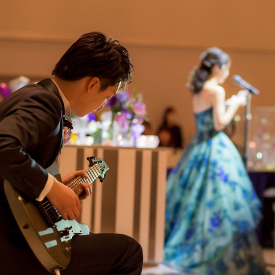 両親へ感謝の気持ちを伝える際は、新郎のエレキギターによる生演奏にのせて、新婦が手紙を読むことで、想いを伝えました。
