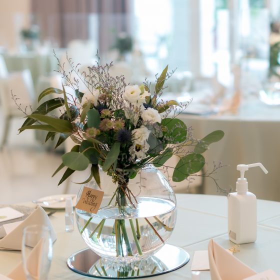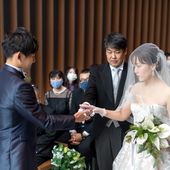 コロナウイルスの感染拡大に伴い、夫婦ふたりでたくさん話し合いをして丸々1年の延期をしました。楽しみにしていただけに1年空いてしまうことが残念でしたが、今思うとその時間で落ち着いて準備をすることができました。延期した後も決行するか、再延期をするか式当日まで夫婦二人で本当に悩みました。しかし、リーヴスさんに感染対策をしっかりとしていただいたり、プランナーさんが沢山話を聞いてくれたりしたことで安心して式を迎えることができました。