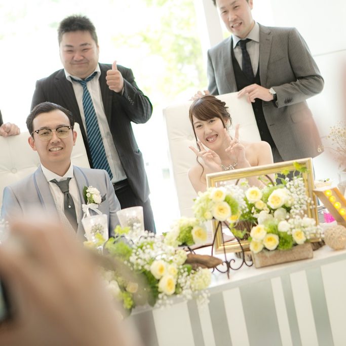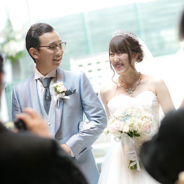 当日は、雲一つない晴天で、気持ちの良い朝を迎えました。新婦よりも新郎の方が緊張をしていて、スピーチの練習をひたすらしていました。ペアレントタイムでは両親に涙ながらに「おめでとう」と声を掛けられ、とても嬉しく何とも言えない場面でした。式が始まると緊張が最高潮に達しましたが、バージンロードを歩いている途中、友人と目が合うと優しく微笑んでくれ、とてもホッとしたのを覚えています。披露宴ではゲストとたくさん写真を撮ったり、演出では一緒に盛り上がったりととても楽しい時間を過ごすことができ、料理も美味しくてゲストからは「今までで一番美味しかった」「印象に残った」と言っていただきました。私たちは、ゲストと話をしたり写真を撮る時間を多くとったのですが、それでも足りないぐらいあっという間に楽しい時間が過ぎてしまいました。それもプランナーさんを始め、司会者さん、音響さん、アテンドさんなど数えきれないほどのスタッフの皆さんがチームとなり支えてくれたおかげだと思っています。特にプランナーさんは約一年間一緒に打ち合わせをし、いつも私たちの話をにこにこと聞いてくださったり、時には的確にアドバイスをくださりました。式が終わった達成感と同時に、プランナーさんと会えるのも最後なのかと、寂しい気持ちが押し寄せてくるぐらい素敵なプランナーさんに出会えてよかったです。そんなプランナーさんやスタッフさんがたくさんいるリーヴスで式を挙げられたこと、ゲストからのたくさんのお祝いの言葉をいただけたこと、全てのことが最高で幸せな一日でした。