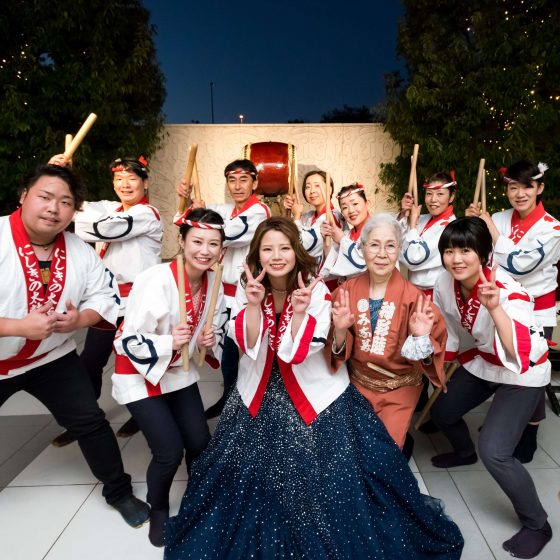 新婦の趣味であった和太鼓を余興で絶対に取り入れたいという願望があり、何度も打ち合わせを重ねテラスでの演奏を実現させたのもこだわったポイントの一つです。当日は参列していただいた方にとても喜んで頂けて、