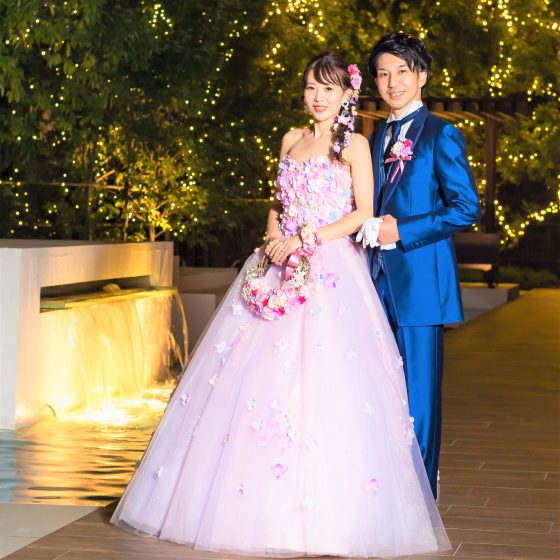 披露宴会場は、物語のプリンセスをイメージしたカラーに統一し、ランタン演出を取り入れました。自分達も含め、参加者全員が楽しめる披露宴を意識して色々な演出やダンスをたくさん取り入れました。また、手作りで製作したものも持ち込み、自分たちらしい結婚式にできました。